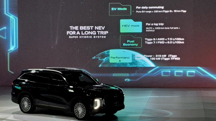 Hay una variante en el Tiggo 9 que incluye más motores eléctricos y tres cambios que funcionan como una caja manual convencional robotizada. La configuración se puede completar con otro motor eléctrico en el eje posterior para generar tracción a las cuatro ruedas.